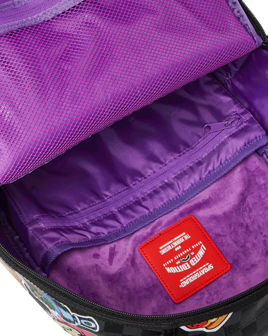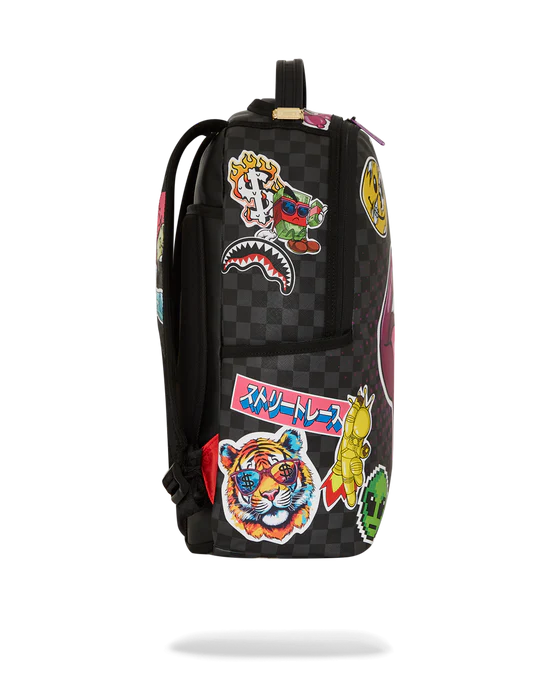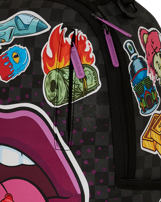 Dimensions: 18″ x 6″ x 11.5″ • Front zipper pocket • Side pockets • Zippered Stash pocket • Separate velour sunglass compartment • Ergonomic mesh back padding • Adjustable Straps for custom sizing • Gold zippers with metal hardware • Metal “Sprayground Authentic” badge • Slide through back sleeve connects to carry-on luggage to free your hands
